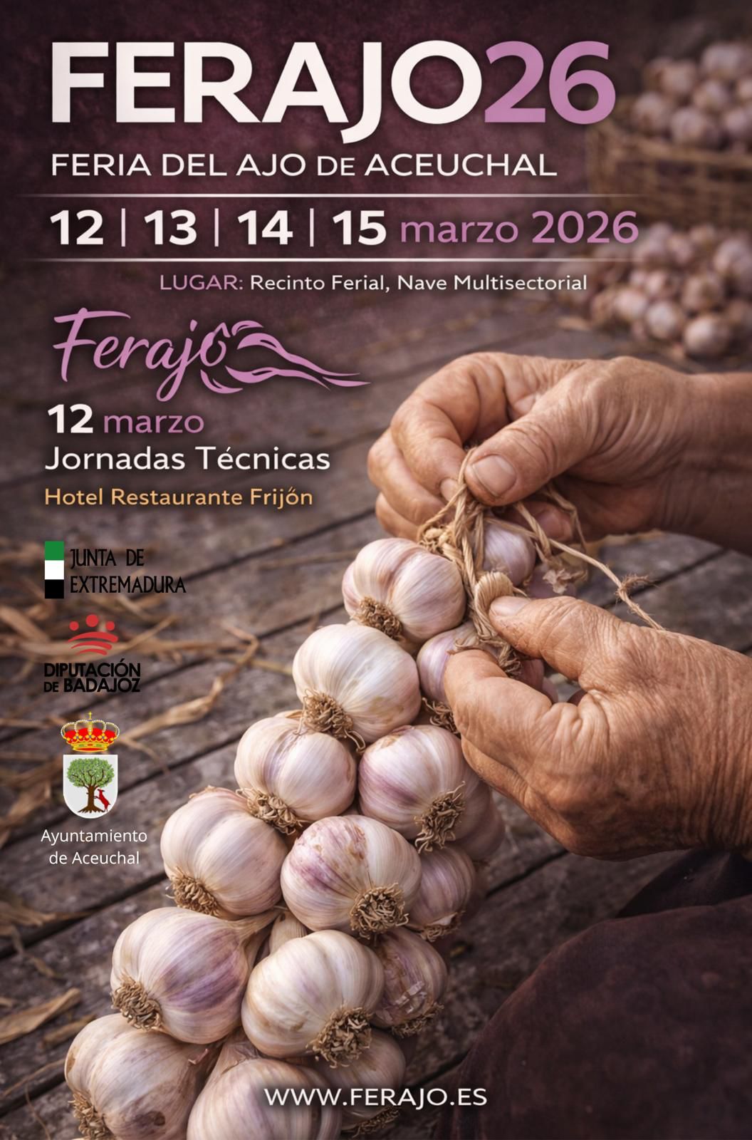 La Feria del Ajo tendrá lugar en el Recinto Ferial, Nave Multisectorial de Aceuchal (Badajoz) los días 12, 13, 14 y 15 de marzo de 2026.
